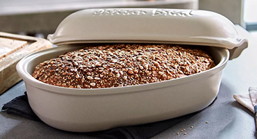 Керамика — уникальный материал. Она одинаково хороша для изготовления как роскошных столовых сервизов, так и функциональных форм для выпечки. Многие кулинары отдают предпочтение именно этим изделиям за их хорошие показатели теплопроводности. Особенное соотношение компонентов в керамической пасте обеспечивает конечной продукции отличное распределение тепла, благодаря которому корпус чаши быстро и максимально равномерно нагревается, что имеет особое значение в вопросе приготовления сложных деликатных блюд. Также чаши для выпечки хлеба из керамики ценятся за богатое разнообразие всевозможных форм, благодаря которым вы самостоятельно можете приготовить не только традиционные прямоугольные буханки или круглые караваи, но и изысканные французские багеты, мягкие пончики или булочки для гамбургеров.
