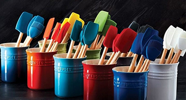 В эту групп товаров входят различные модели брендов Le Creuset, Ballarini, Silikomart и прочих. Здесь есть и более прочные лопатки, которые можно использовать как скребки, и более мягкие. Некоторые из них оснащены прорезями и отверстиями на рабочем полотне для обеспечения оттока жидкости.
