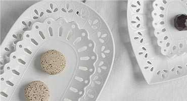 Ажурное обрамление каждого изделия эффектно подчеркивает безграничную роскошь классического белоснежного фарфора