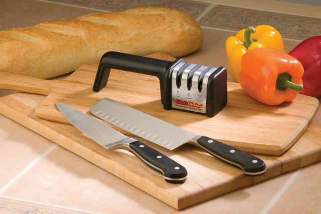 Яркий пример – трехуровневая электрическая точилка от Chef’s Choise, где поверхности для заточки покрыты алмазными абразивами и обладают запатентованной системой направляющих – для идеального результата.