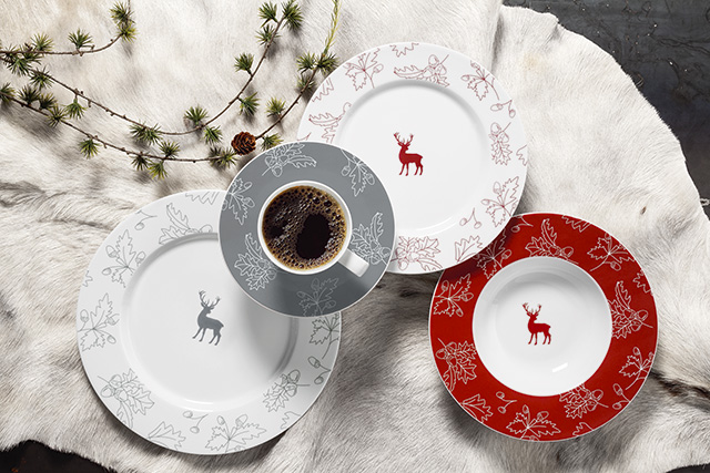 6. Милые сервизы природно-лесной тематики коллекции NO LIMITS – необычные и яркие серии в красном и сером цвете. Предметы сервизов украшены оленями, желудями и листиками. Душевные серии подходят для обеда, кофейных церемоний и чаепития. Все элементы серий при своей контрастности гармонично сочетаются друг с другом.