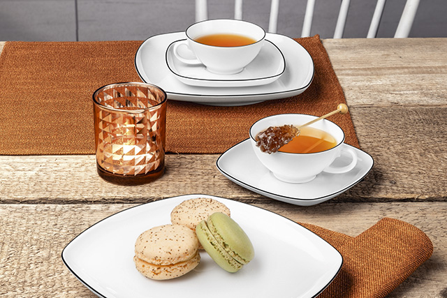 5. Коллекция LIDO – многофункциональный сервиз для ежедневного пользования. В составе кофейные чашки, пиалы для завтрака, тарелки хлебные, обеденные и десертные, соусница и чайные пары. LIDO – это классический белый фарфор с нуарным контуром украсят каждую кухню вне зависимости от времени суток.