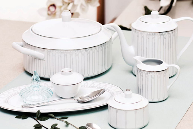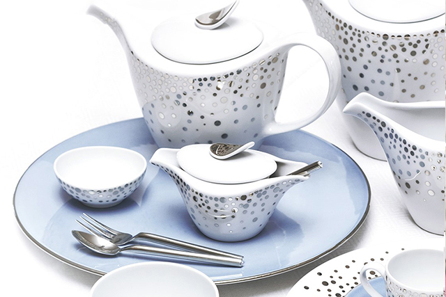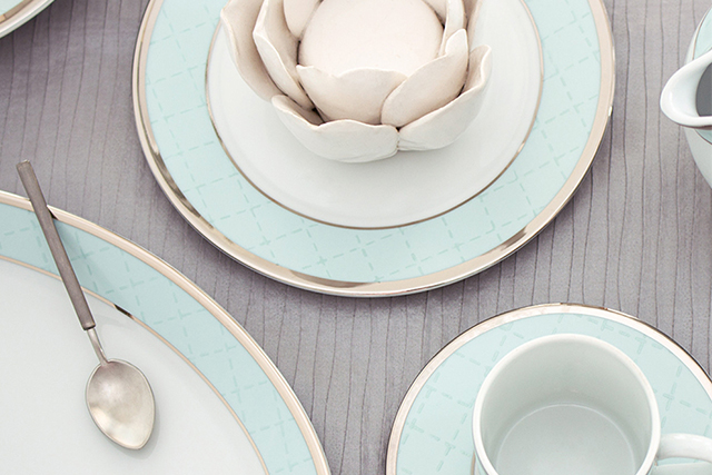 Коллекция Allegro – это геометрическая эстетичность и тонкие платиновые линии от дизайнера Елены Бойя. Этот же дизайнер работал над коллекцией Ethereal Blu, которая подходит для утреннего кофе и чая и также для ужина. Спокойный бирюзовый цвет с платиновой отделкой смотрится невероятно привлекательно.