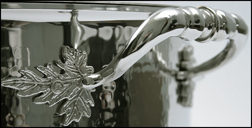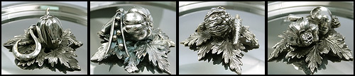 Уникальным по фактуре и блеску изделиям серии OPUS Prima нужны были такого же уровня и ручки, дизайну которых уделили не меньше внимания. Изящная форма ручек кастрюль с лепестками на местах стыка, а так же ручки крышек в виде головки чеснока, стручка гороха, перчика с огурцом или артишока покрытые серебром не смогут оставить равнодушным даже тех, кто не связал свою любовь с кулинарией.