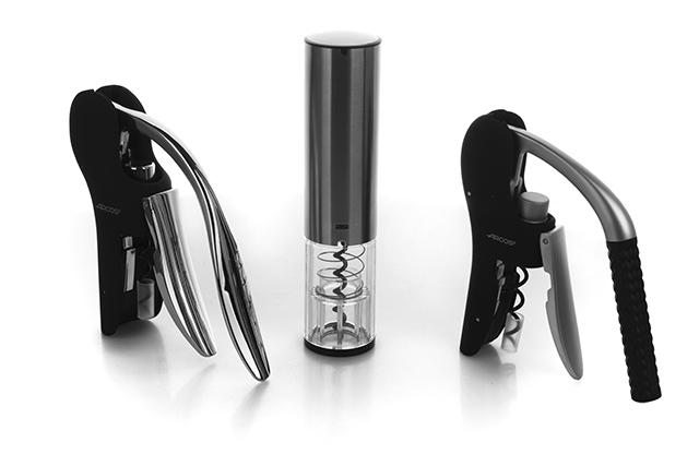5 — Штопоры. Два механических: один — с гладкой хромированной рукоятью, второй — с матовой, из ребристого эластомера, чтобы не скользил в руках. И электрический — легче, меньше и удобнее, чем раньше.