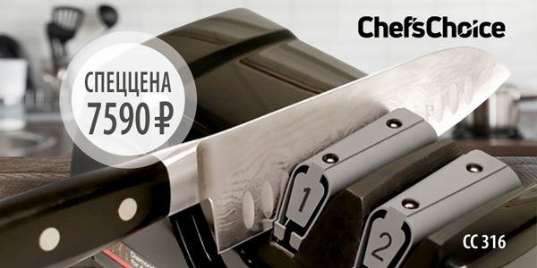 31.08.2018В сентябре действует специальная цена на электроточилку Chef’s Choice для японских ножей — 7590 рублей.