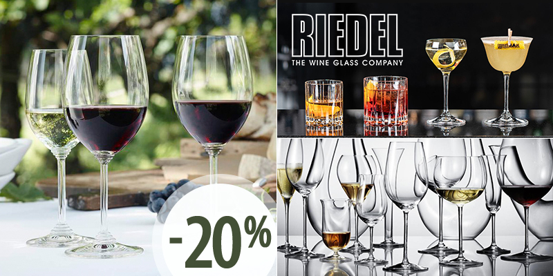 -20% на весь ассортимент шикарных бокалов Riedel