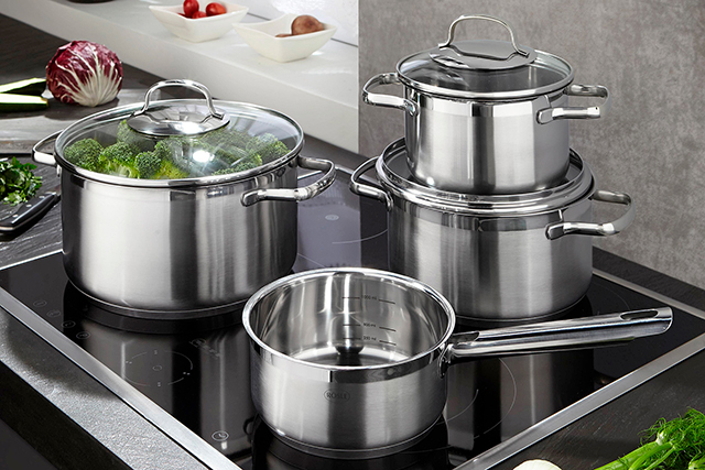 Посуда из нержавеющей стали с зеркальной поверхностью никогда не потеряет своей актуальности и прекрасно впишется в дизайн любой современной кухни. Немецкий бренд Roesle продолжает радовать покупателей всё новыми изделиями из высококачественной нержавеющей стали 18/10. Посуда подходит для всех типов поверхностей, проста в уходе и невероятно практична. Среди новинок – универсальные наборы кастрюль, а также отдельные кастрюли различного диаметра и объема. В зависимости от ваших предпочтений на выбор есть кастрюли со стеклянными крышками или же крышками из нержавеющей стали. Посуда Roesle идеально подходит для варки, тушения и томления, жарки, приготовления соусов и пасты, а также десертов.