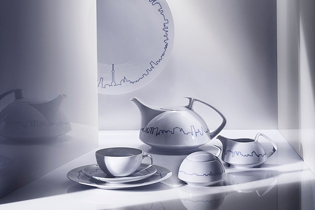 Одна из самых успешных серий бренда TAC Gropius создавалась как дань традициям с почтением к прошлому и переосмысляла потребности клиентов. Белый обеденный фарфор с неоднородными текстурами и нежным голубым рисунком, который с первого взгляда напоминает кардиограмму, при детальном рассмотрении открывает контуры больших городов!