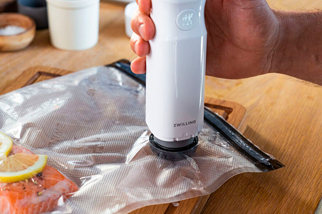 1. Ручные вакууматоры – компактные, портативные устройства, которые работают от аккумуляторов или электросети. Они подходят для домашнего использования и могут применяться для упаковки небольших порций пищи. Такие вакууматоры упаковывают пищу в пакеты или контейнеры. Это очень удобно для хранения любой пищи, включая напитки. Ручные модели представлены у Zwilling J.A. Henckels, CASO и Status.