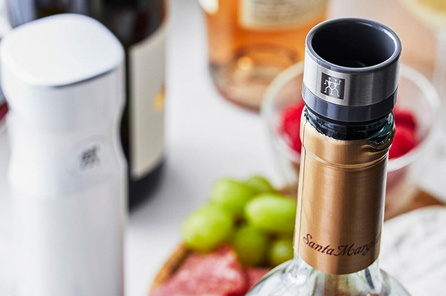 Что же касается вина, то нередко бывает такое, что бутылка откупорена, но вино еще не допито. Просто закрыть пробкой или подручными средствами горлышко означает, что напиток окислится и потеряет свои свойства под воздействием кислорода. Zwilling J.A. Henckels предлагает к своему ручному вакууматору наборы пробок, которые отлично справятся с сохранением вашего вина свежим длительное время.