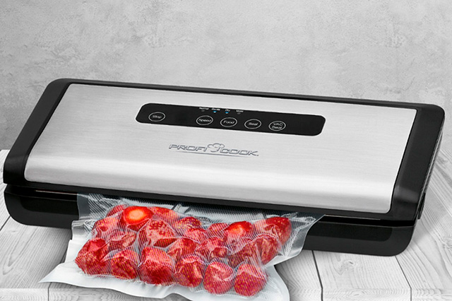 3. Настольные рулонные вакууматоры – это приборы с функцией обрыва пленки, что делает процесс более удобным и эффективным. Такой вакууматор пригодится тем, кто летом делает заготовки на зиму или готовит к хранению мясо и рыбу. Также рулонный вакууматор не подойдет для напитков. Бренды CASO, Steba, Status, Profi Cook и Rommelsbacher продают такие модели.