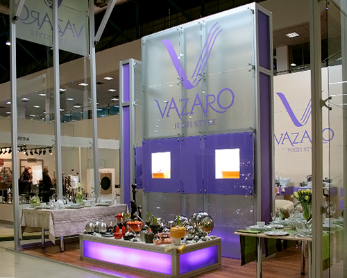 С 13 по 16 января 2009 года в Центральном выставочном комплексе «Экспоцентр» в рамках выставки товаров народного потребления «КонсумЭкспо-2009» компания «VAZARO» представляла полноценную концепцию салона-магазина изысканной посуды и аксессуаров для дома и сада. На стенде можно было увидеть разнообразие нержавеющей и медной посуды для приготовления, насладиться красотой сервировки стола, подумать о грядущей весне и аксессуарах для сада, а так же посидеть у камина с мыслями о доме и его убранстве. Всей этой красоте солировало флористическое оформление весенними первоцветами.