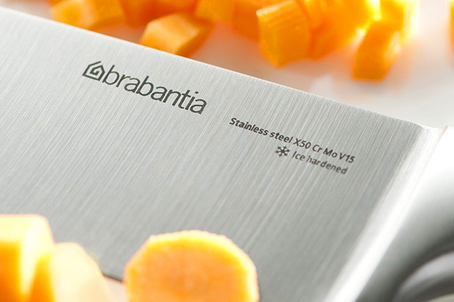 Что касается ножей, то ранее Brabantia уже выпускала ножи для чистки овощей. Но сегодня бренд расширил ассортимент в части кухонных инструментов, поэтому вы можете подобрать именно те типы ножей, которые вам необходимы, например, разделочный, для мяса, поварской, для хлеба, томатов и универсальный. Кроме того, сразу же можете приобрести мусат для бережного ухода за изделиями. Все ножи выполнены из высококачественной нержавеющей стали, обладают повышенной износостойкостью и прекрасно сохраняют остроту режущей кромки. Работать ножами от Brabantia одно удовольствие, ведь они не скользят в руке и очень эргономичны.