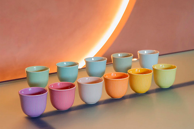 В ассортименте Loveramics кофейные и чайные пары разных объемов и расцветок. Формы классические, поверхность без текстур, но очень тактильно приятная. Стаканы для кофе – необычная посуда с разными текстурами из фарфора, а также цветного стекла: особенная эстетика.
