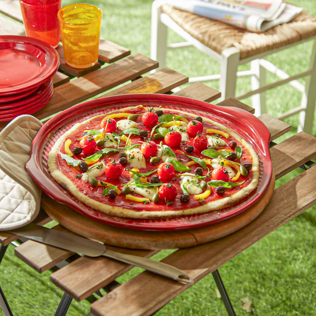 Блюдо для пиццы, керамика, 37 см, алый, EH157614, EMILE HENRY, Франция