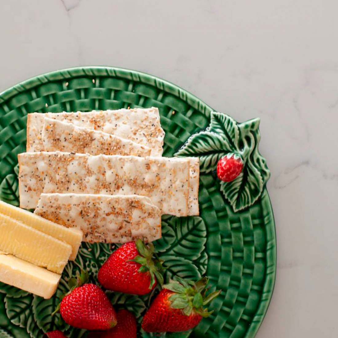 Блюдо для сыра «Земляника», 32 см, керамика, зеленый, серия Земляника, BOR65001261, Bordallo Pinheiro, Португалия