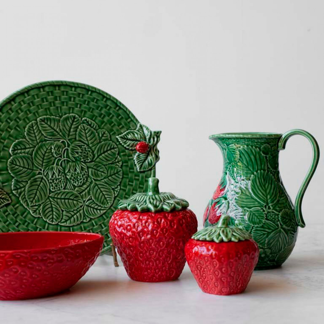 Сочность и богатство красок спелых летних ягод в полной мере передано в изделиях производства испанской компании Bordallo Pinheiro. Четко прорисованный до последнего семечка силуэт выглядит настолько реалистично, что невозможно поверить, насколько функциональна и практична посуда коллекции «Земляника».