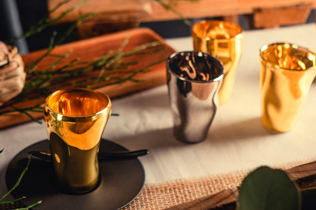 Кофейная пара для капучино из хрустального стекла, кофейная чашка, покрытая внутри золотом, чашка с блюдцем для эспрессо – все эти изделия представляют собой настоящую драгоценность. И это не только метафора.