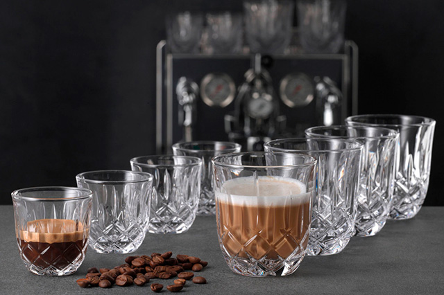 Кофеманы, которые следят за тенденциями, предпочитают хрустальные стаканы. Звучит необычно, но такое решение набирает обороты, и с каждым днем ассортимент таких стаканов растет. Итак, набор стаканов для эспрессо и капучино от Nachtmann – универсальное решение для тех, кто предпочитает разный кофе. У Nachtmann, кстати, есть великолепный набор бокалов для холодного кофе невероятной красоты.