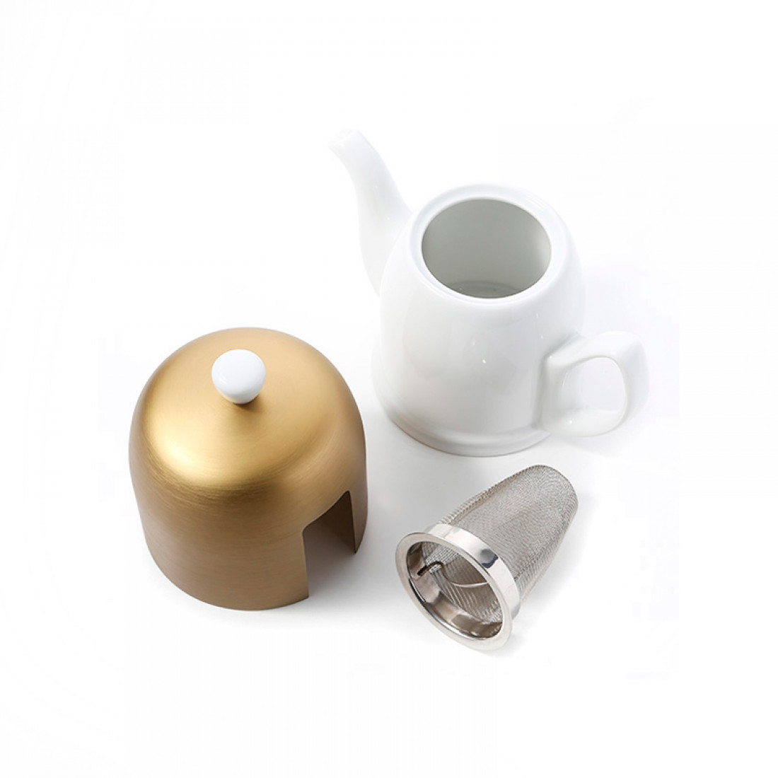 Чайник заварочный с колпаком, 700 мл, фарфор, алюминий, белый, бронзовый, серия Salam, 216411, GUY DEGRENNE, Франция