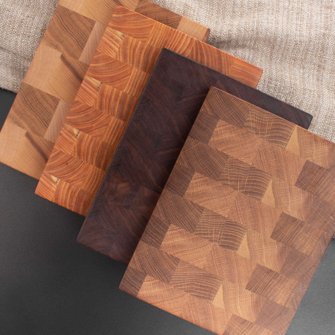 Торцевые разделочные доски изготавливаются из лиственных пород древесины. Древесные волокна в таких досках располагаются перпендикулярно плоскости реза, это позволяет защитить доски от следов реза, при этом нож намного меньше тупиться.