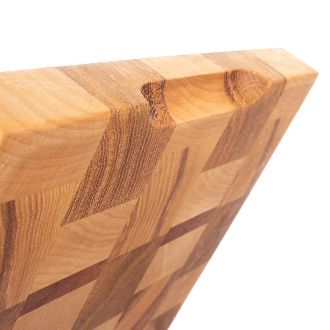 Торцевые разделочные доски изготавливаются из лиственных пород древесины. Древесные волокна в таких досках располагаются перпендикулярно плоскости реза, это позволяет защитить доски от следов реза, при этом нож намного меньше тупиться.
