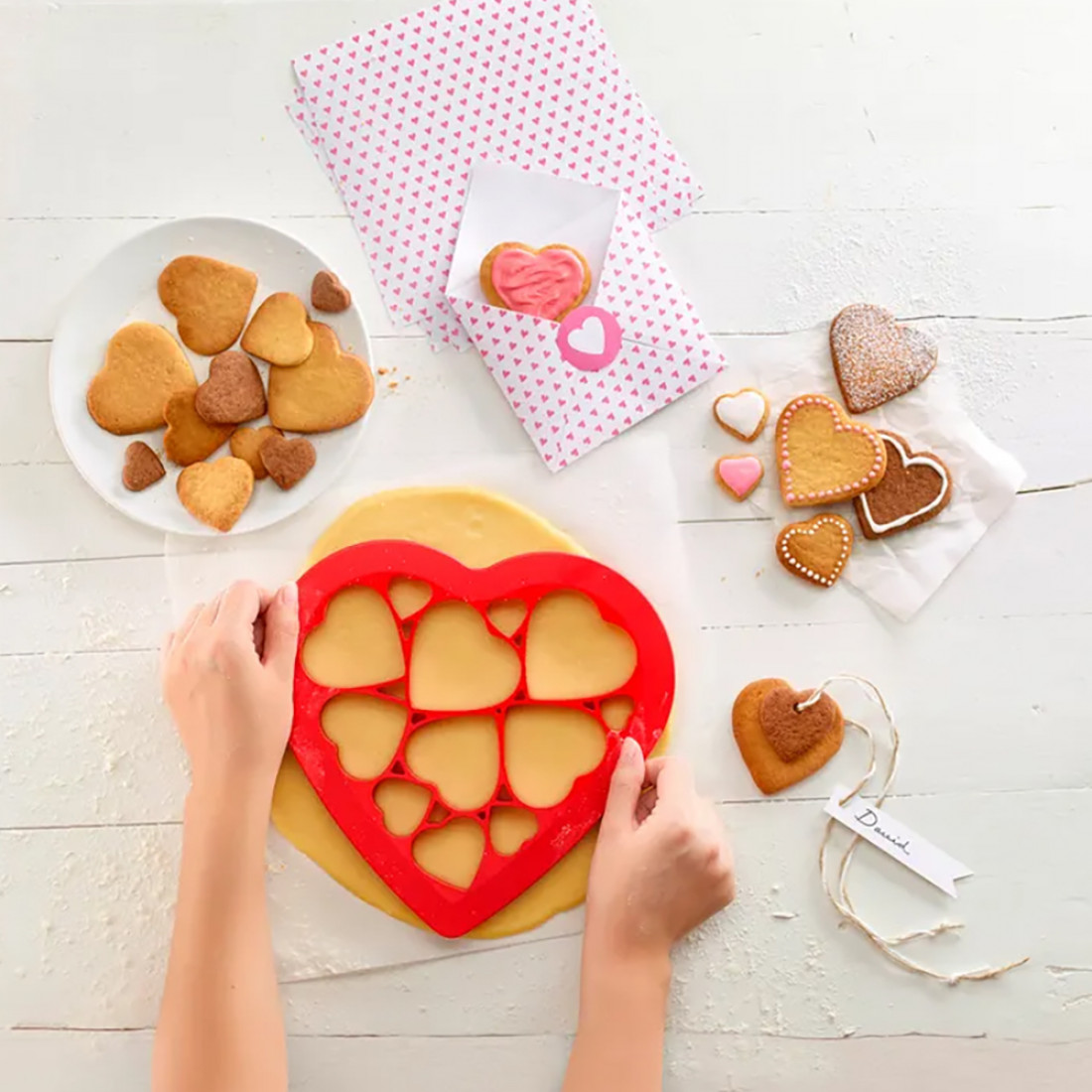 Форма для выпечки печенья «Сердечки», 25 х 24 см, ABS пластик, красный, LE887529, LEKUE, Испания