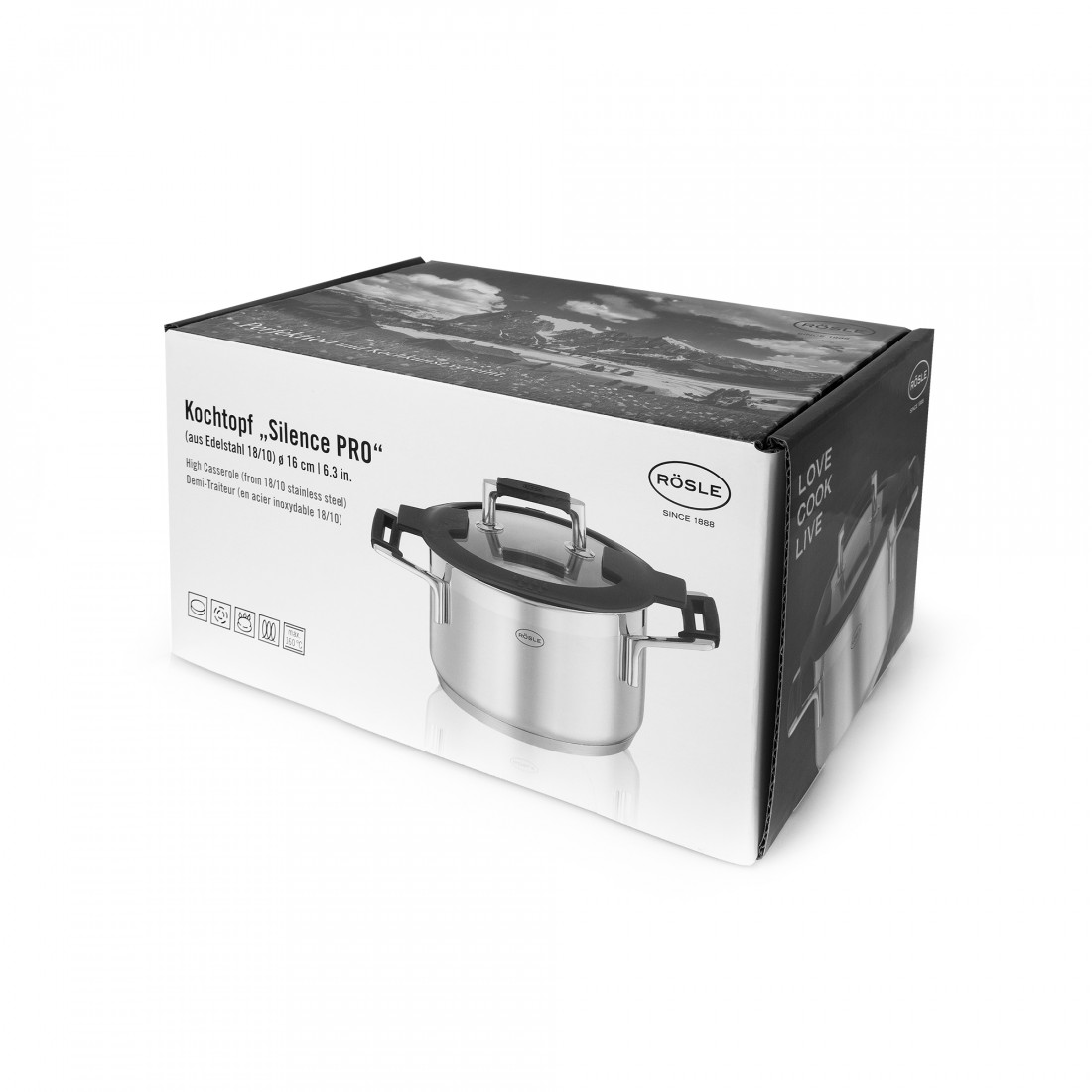 Изделия серии Silence Pro изготавливаются из прочной нержавеющей стали. Она отлично сопротивляется воздействию различных коррозионных факторов и обеспечивает сохранение целостности формы даже при постоянном повторении циклов нагревания и охлаждения. Внешняя поверхность кастрюль, сотейников и сковородок отполирована в оригинальной технике, а их дно имеет многослойную структуру с алюминиевым сердечником толщиной в 5 мм.