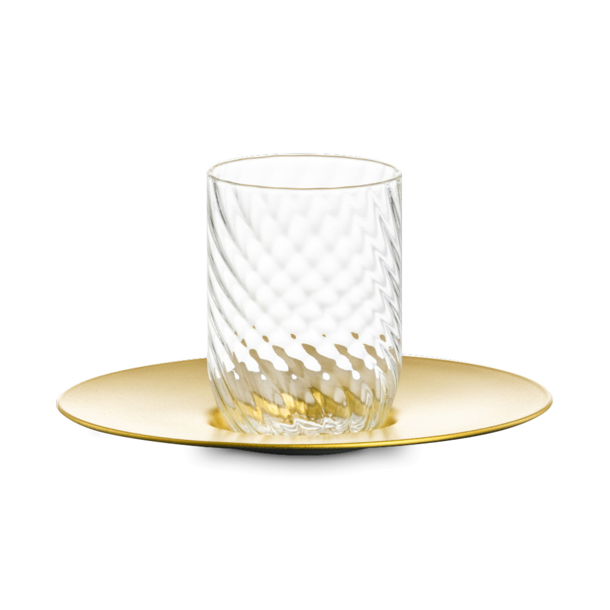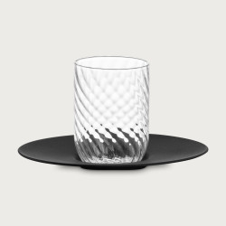 Стаканы для воды Rising уникальны в своем сочетании визуальной красоты и приятных тактильных ощущений. В зависимости от угла обзора тонкая структура поверхности отражает свет от основания, который будто сияет вверх. Верхний кант покрыт золотом или платиной.