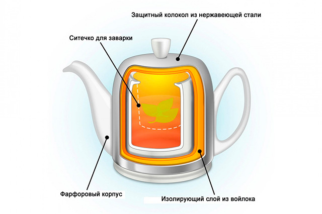 Фарфор и стекло нейтральны и подходят для всех типов чая. Керамика со временем пропитывается ароматом и идеальна для одного сорта. Обязательно наличие ситечка или вставного стаканчика для заварки.