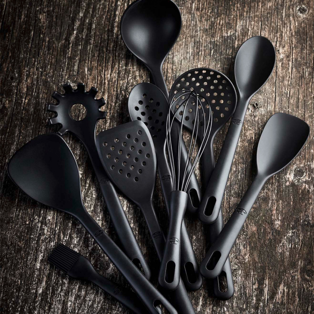 В основе изделий, входящих в коллекцию Nero от Ballarini, лежит высококачественный силикон. Он обладает уникальной особенностью устойчивости к воздействию высоких температур. Благодаря этому вы можете пользоваться утварью и для помешивания кипящей воды, и для переворачивания продуктов на горячем масле — они способны сохранить целостность и функциональность при взаимодействии с температурой, не превышающей 230 градусов по Цельсию. Кроме того, силикон, используемый в изготовлении предметов этой группы, отличается умеренной эластичностью. Такие лопаточки и кухонные ложки можно смело использовать вместе со сковородами, оснащенными антипригарным покрытием без вероятности его деформирования.