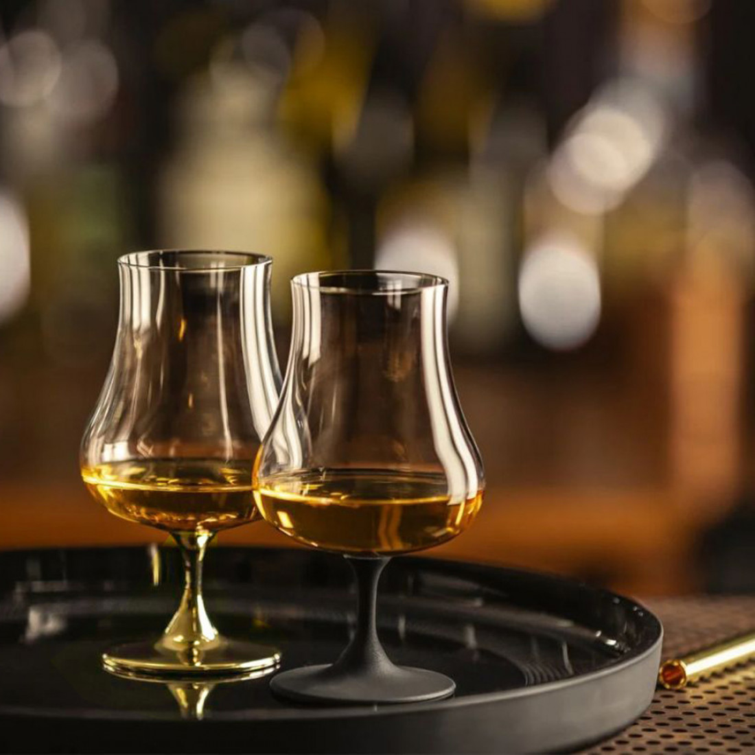 Классная новинка – классические бокалы олд фешн из коллекции Glen. Эти бокалы выполнены из хрустального стекла в двух вариациях украшающего орнамента. В первом случае это матово-черная отделка, которая придает экстравагантности эстетике, а во втором – шикарная, покрытая 24-каратным золотом. В этой же коллекции есть штоф, в котором вы сможете не только хранить виски без вреда для напитка, но и эффектно подавать.