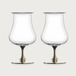 Стаканы для воды Rising уникальны в своем сочетании визуальной красоты и приятных тактильных ощущений. В зависимости от угла обзора тонкая структура поверхности отражает свет от основания, который будто сияет вверх. Верхний кант покрыт золотом или платиной.