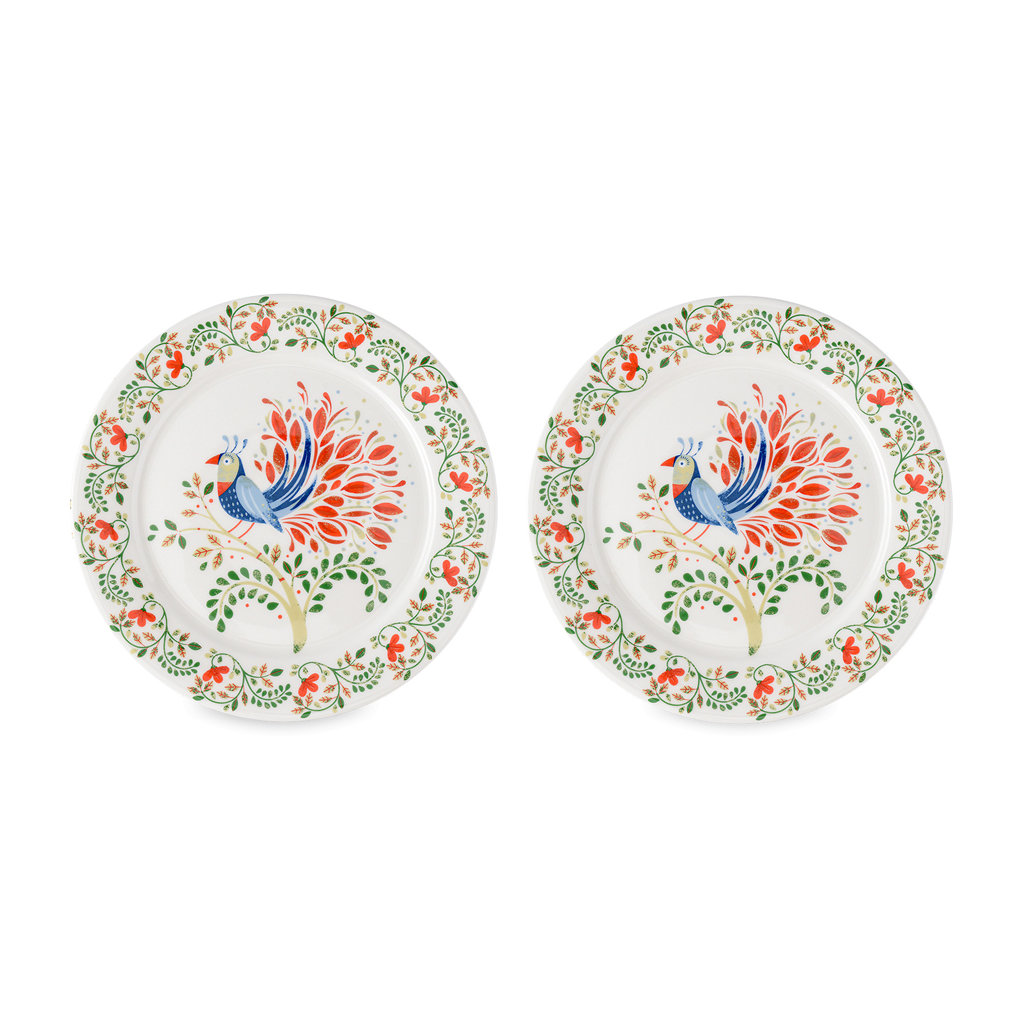 Набор из 2-х закусочных тарелок Fantail Bird, 21 см, фарфор, белый, декор, серия Birds of Paradise, LJ0000301, LIBERTY JONES, Россия