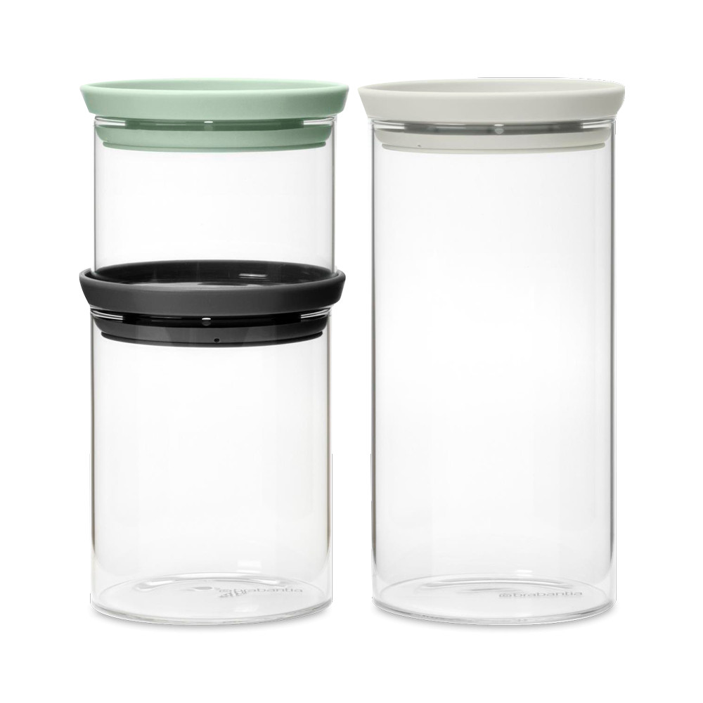Набор из 3-х банок для сыпучих продуктов, 0.3, 0.6, 1.1 л, стекло, пластик, силикон, B100550, BRABANTIA, Бельгия