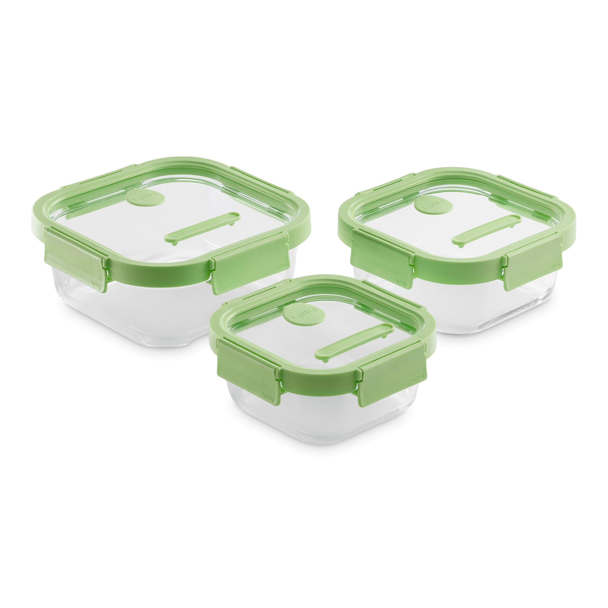 Набор из 3-х пищевых квадратных контейнеров, стекло, силикон, зеленый, серия At Home, LE884047, LEKUE, Испания