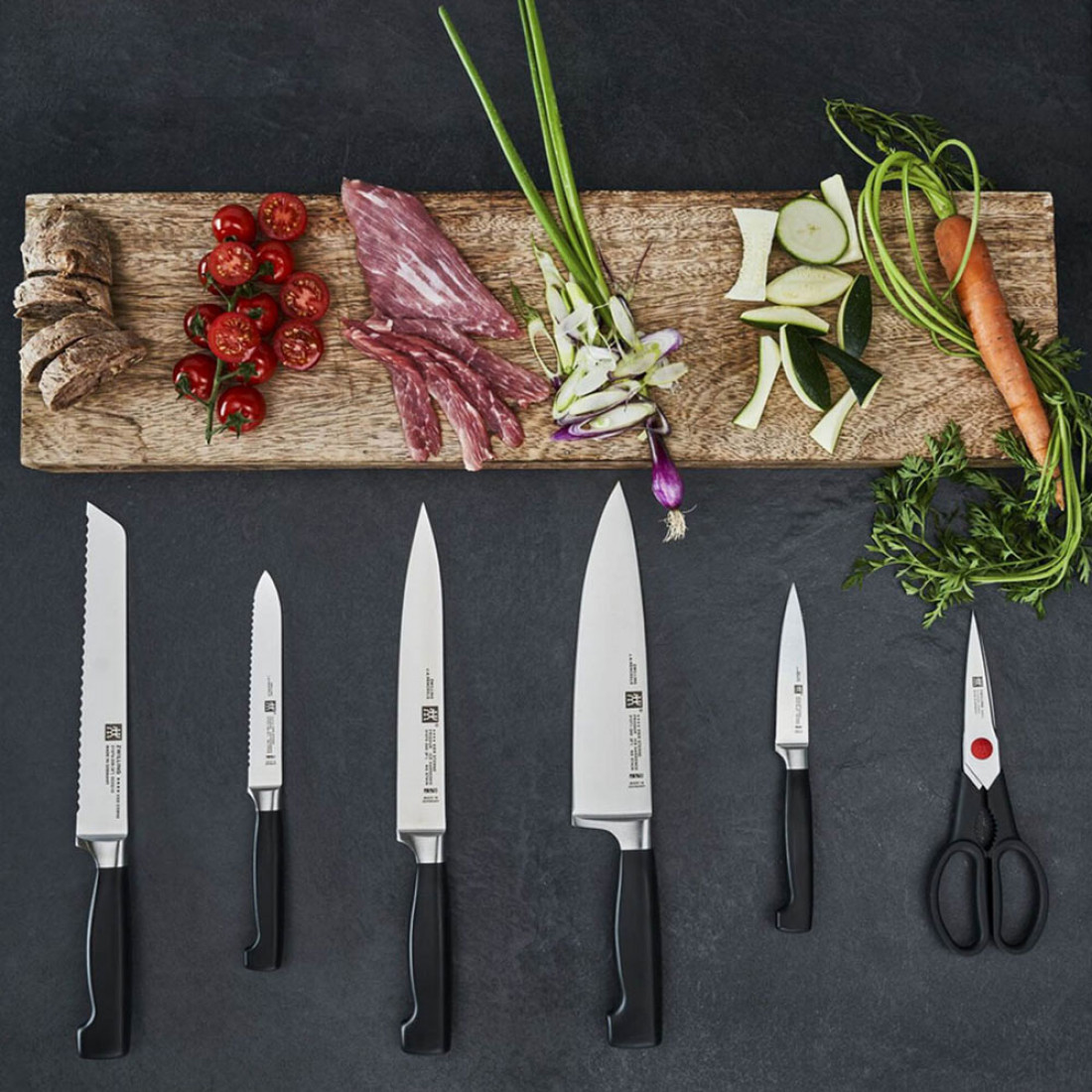 Ножи из коллекции TWIN Four Star от бренда Zwilling J. A. Henckels — легенда в ножевом мире. Эта серия была разработана 40 лет назад и по сей день является одной из наиболее успешных проектов компании. Идеально сбалансированные роскошные ножи с ровными матово-блестящими клинками используются во всех уголках земли как на домашних, так и на профессиональных кухнях. Многие производители постарались создать реплики этих изделий, но ни одна из их идей успехом не увенчалась.