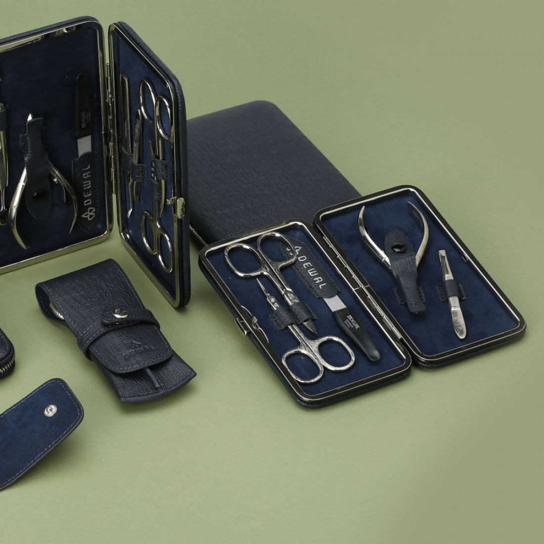 • Футляры изготовлены из первоклассной натуральной кожи. Сдержанные и элегантные расцветки выделяют маникюрные наборы Dewal среди других брендов