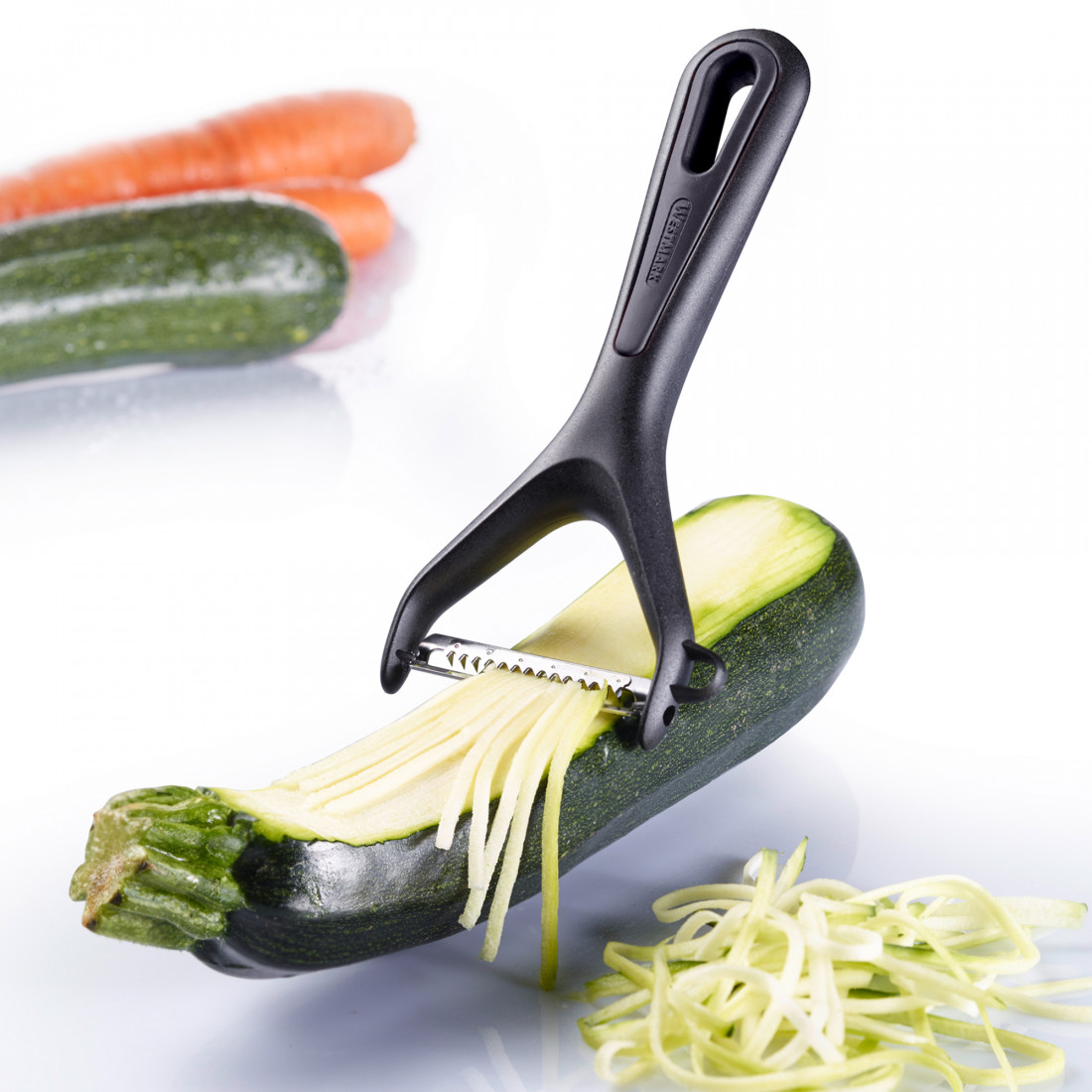 Пинцеты; лопатки для сервировки и перемешивания; ножи; открывалки; разливательные ложки; кухонные ножницы, в том числе для нарезки зелени и овощей; сита; емкости для хранения специй; оригинальные и очень удобные в работе терки; винные, чайные и кофейные аксессуары; салфетки, скатерти, корзины для сервировки — все это имеет настолько высокое качество, что само присутствие товаров Westmark в доме говорит о приверженности хозяев к исключительному качеству и эксклюзивной функциональности.