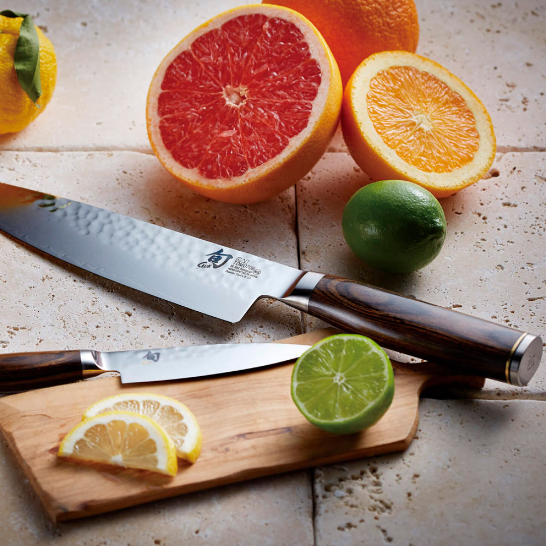 Сердцевина лезвия Shun Premier состоит из сверхпрочной стали VG Max, которая имеет облицовку из дамасской стали из 32 слоёв. Такая комбинация различных сортов стали делает лезвие одновременно твёрдым и эластичным. Заточенное с двух сторон лезвие удобно в обращении благодаря своему небольшому весу и гарантирует чистую и точную резку. Кованая поверхность - известная в Японии как Tsuchime - имеет не только эстетическое значение, но также дополнительно облегчает отделение нарезаемого продукта от лезвия благодаря возникновению небольшой воздушной подушки.