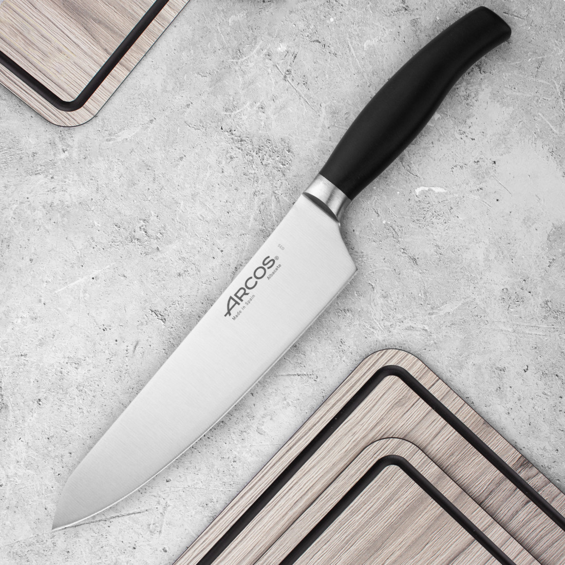 В категорию кухонных ножей Arcos входят модели, клинки которых изготавливаются из прокатной стали или выковываются из цельного бруска металла. У большинства из них — цельнометаллическая основа, обеспечивающая больший контроль над каждым движением, а также снижающая вероятность возникновения люфта клинка до минимума. Здесь присутствуют модели, предназначенные для работы с мясом, рыбой, филе, хлебом, сыром и прочими продуктами.