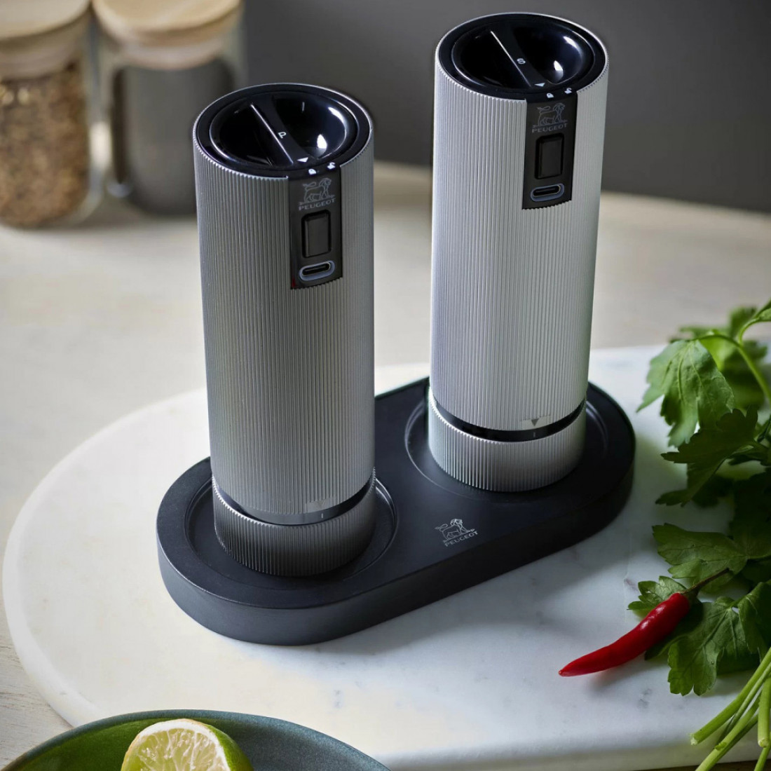 Подав на стол мельницы для соли и перца Peugeot в стильной подставке, вы сделаете обед или ужин более непринуждённым для ваших гостей
