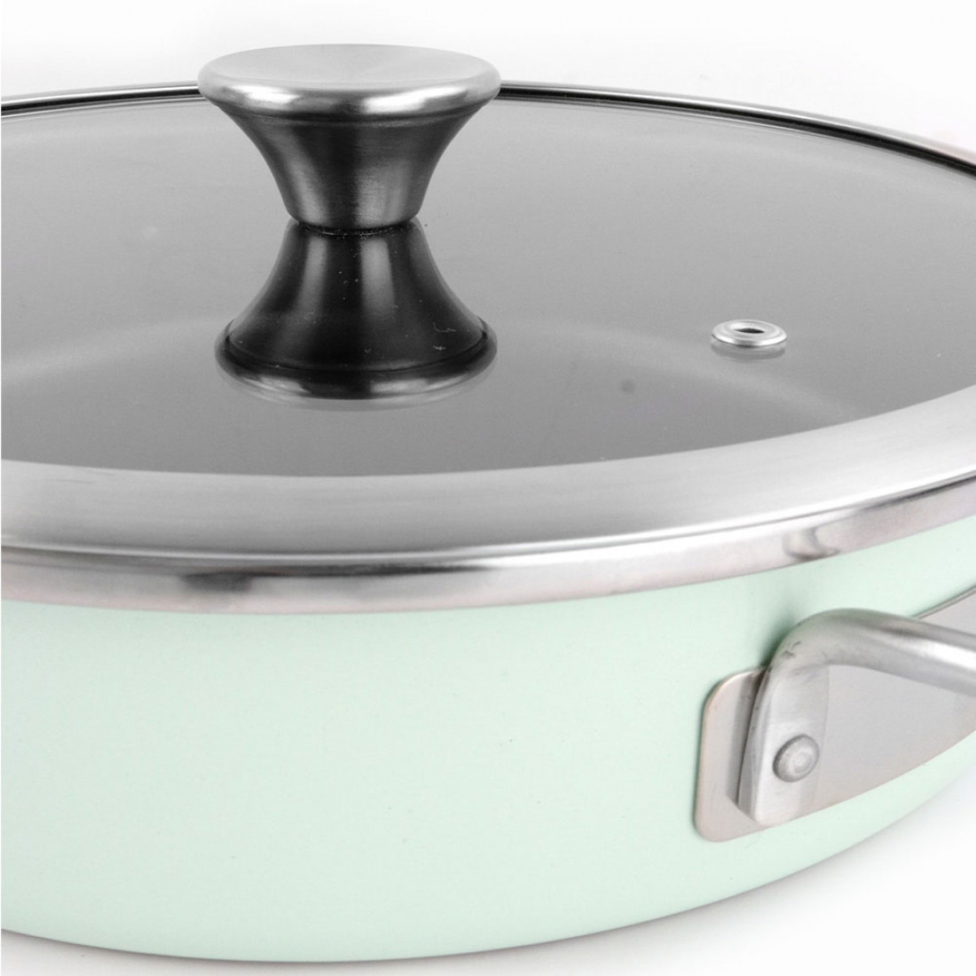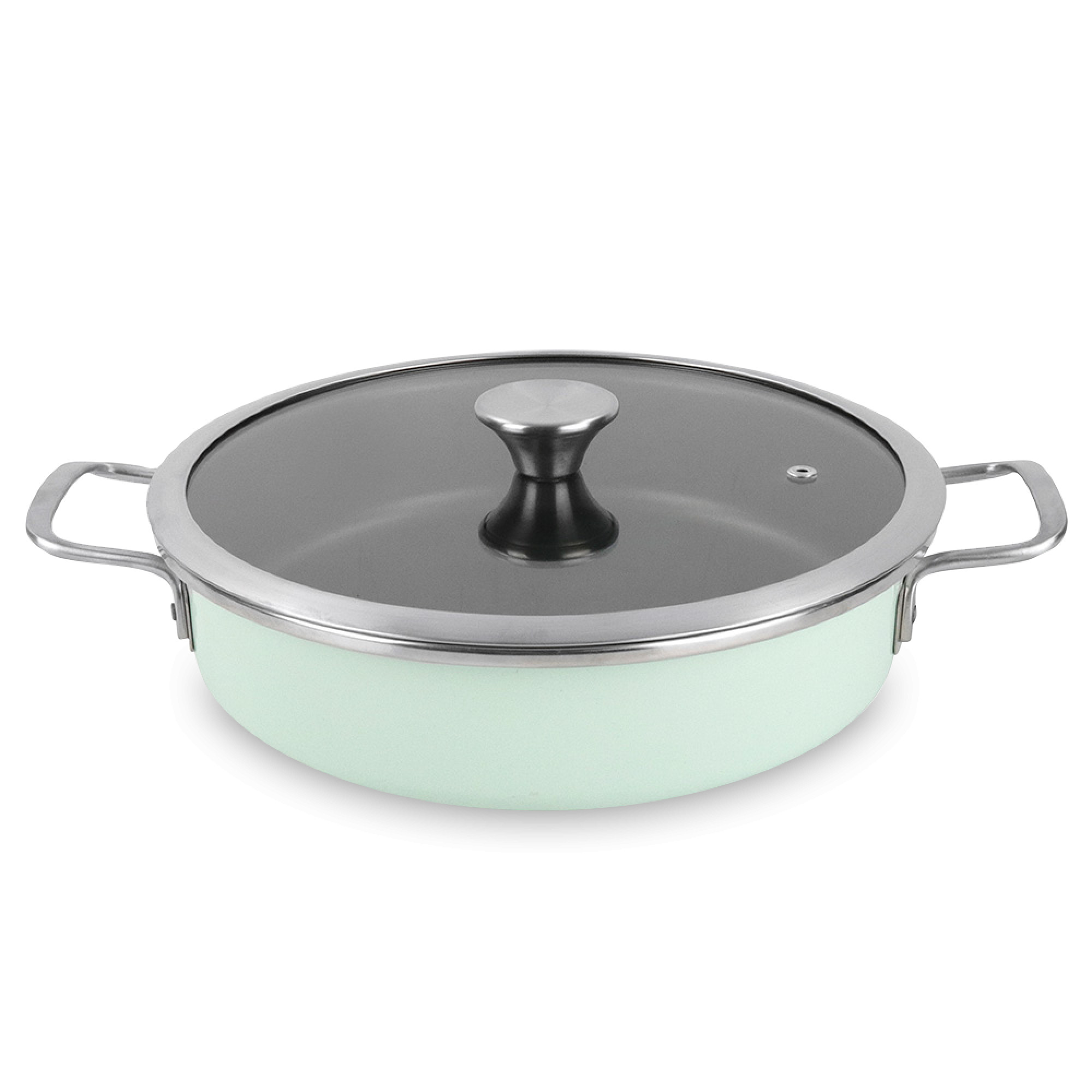 Сотейник с ручками и крышкой, 28 см, сталь, стеклоэмаль, мятный, серия Nordic Mint, 01114813, VITRINOR, Испания