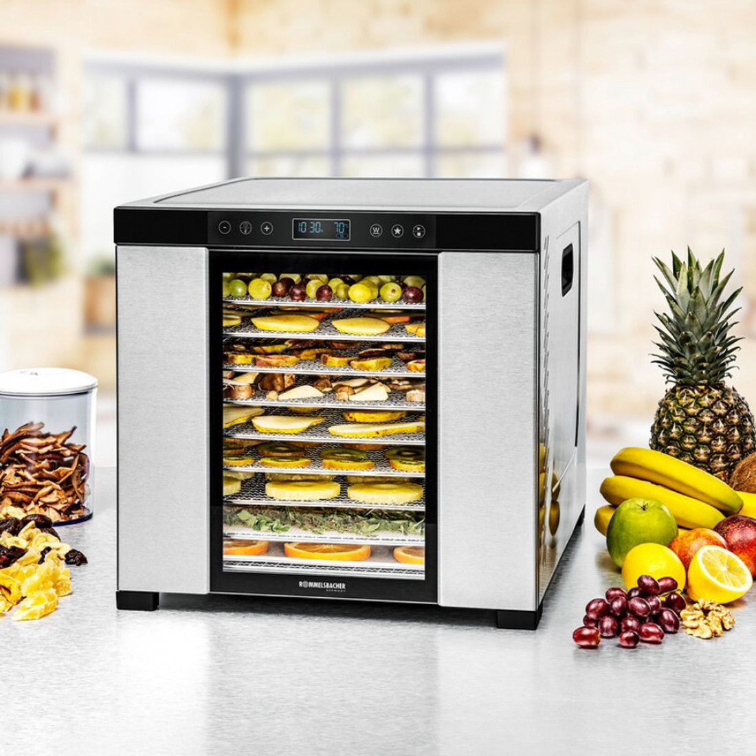 Сушилка для овощей и фруктов, нержавеющая сталь, стальной, DA 1050, ROMMELSBACHER, Германия