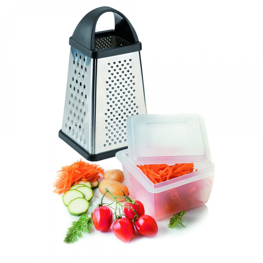 Многофункциональные терки серии Technicus – необходимые атрибуты любой кухни. Сменные насадки из высококачественной нержавеющей стали и удобный пластиковый контейнер позволят быстро и аккуратно натереть любые продукты.