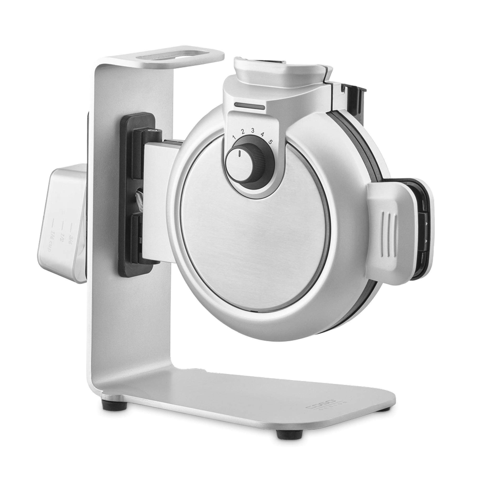 Тем, кто ценит необычные решения, подойдет стильная вертикальная модель WaffleUp от Caso. Корпус из нержавеющей стали, подача теста сверху, пять степеней прожарки и прилагаемый половник превращают приготовление вафель в аккуратный и эстетичный процесс.
